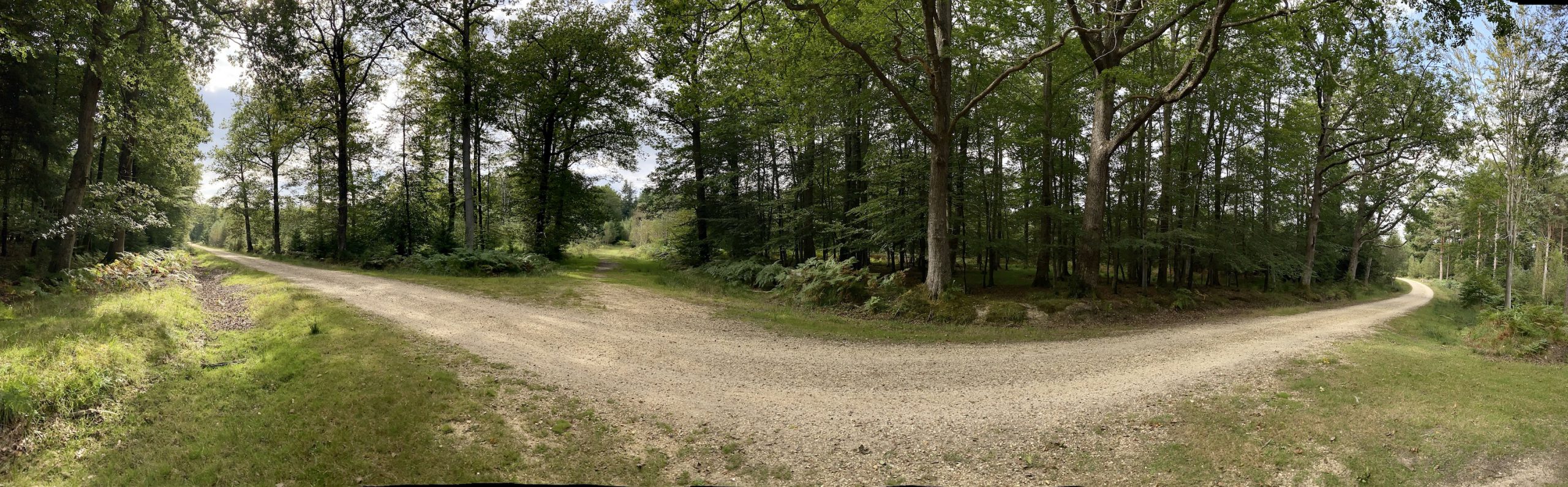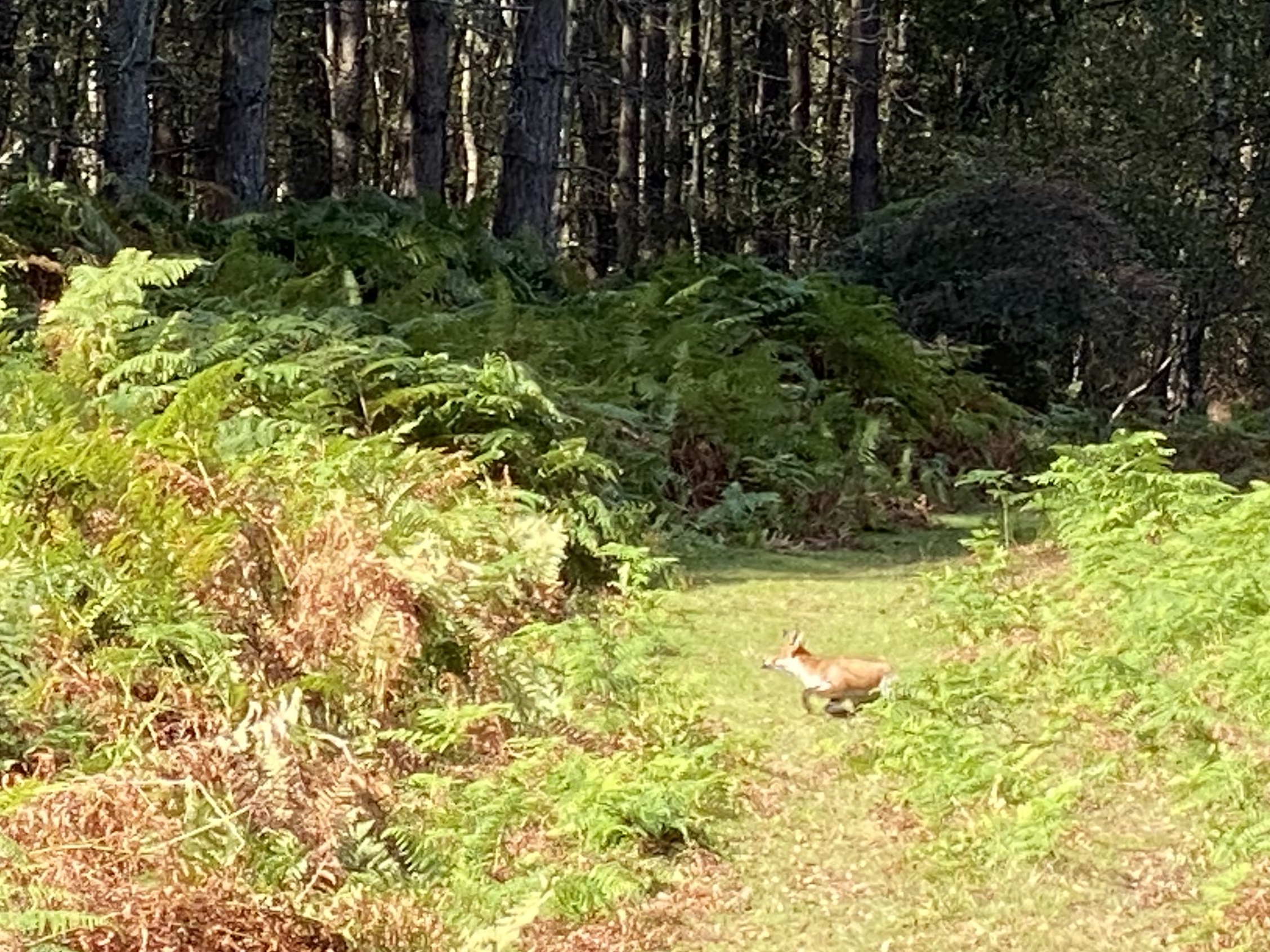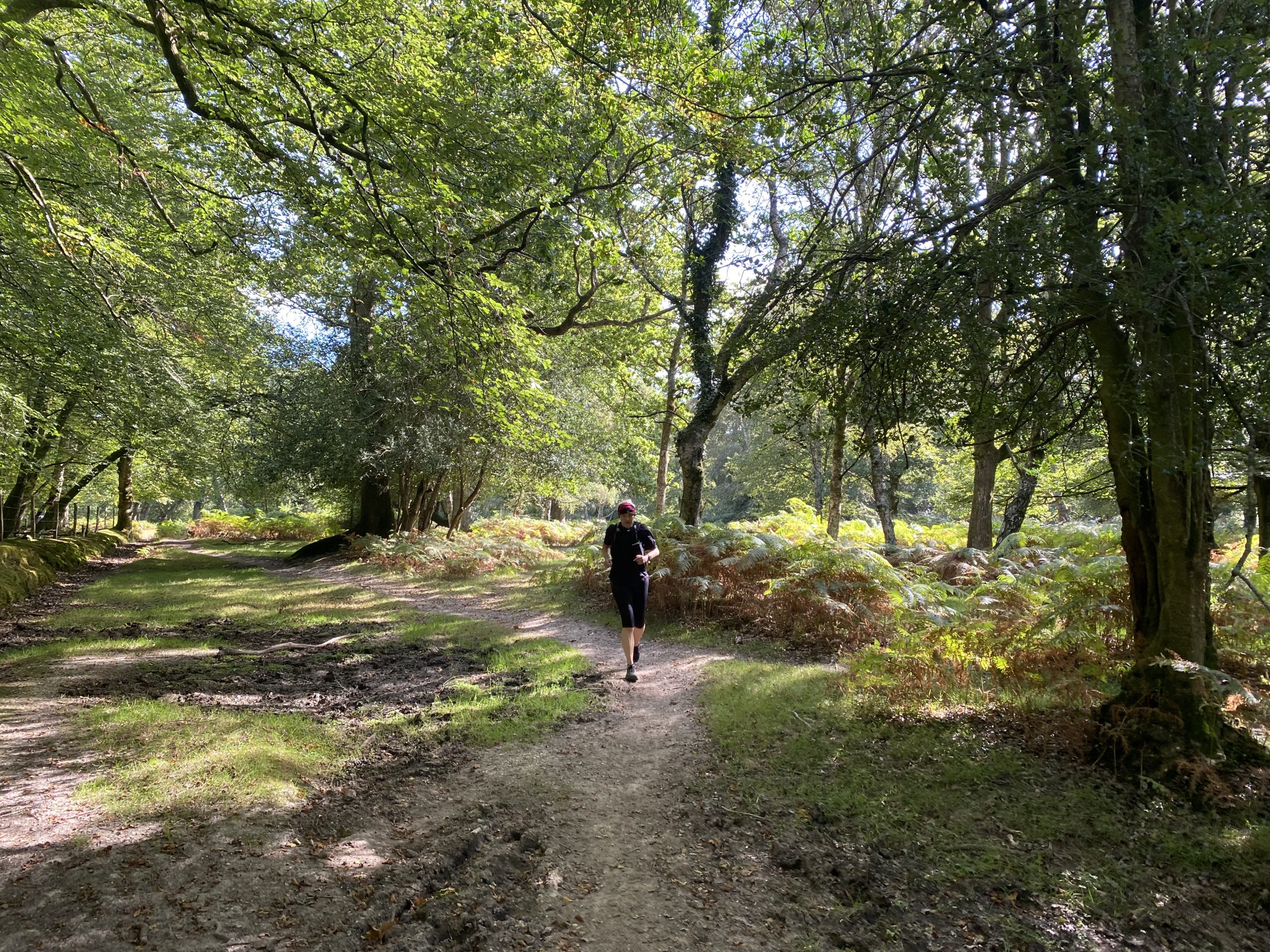 After sticking to the cycle track for a few miles we cut into the forest on a grassy footpath. The New Forest has an unusual mix of flora with open expanses of grass and heathers interspersed with woodland dominated by Beech and Oak trees. On the fringes of the forest ferns dominate the undergrowth and, whiles these are all familiar sights in the UK, somehow their arrangement in the New Forest makes it unique.