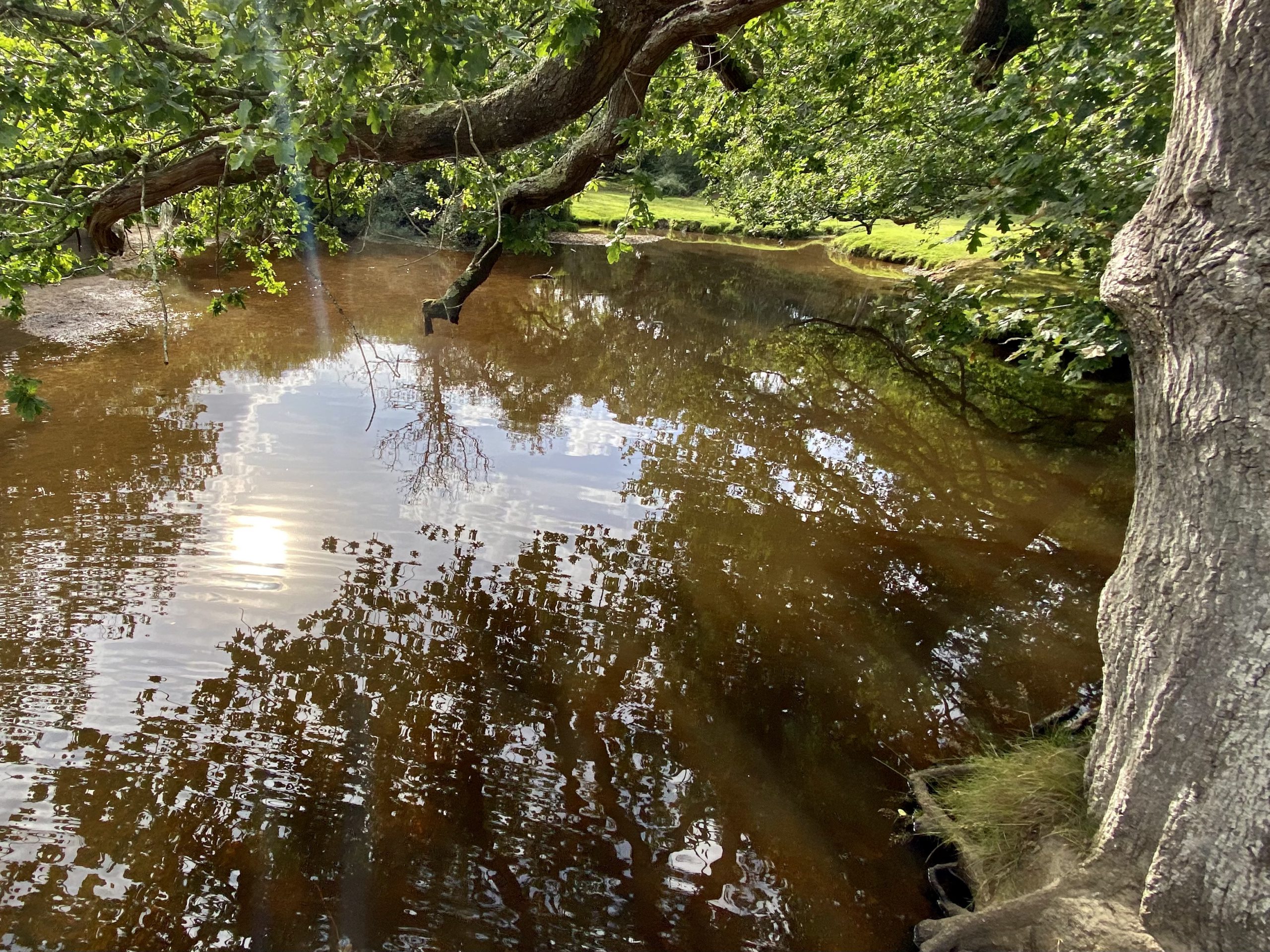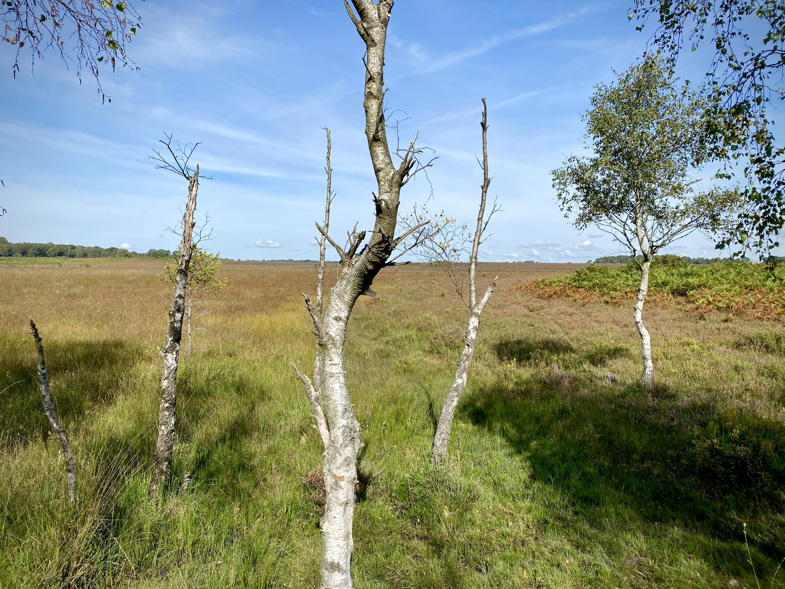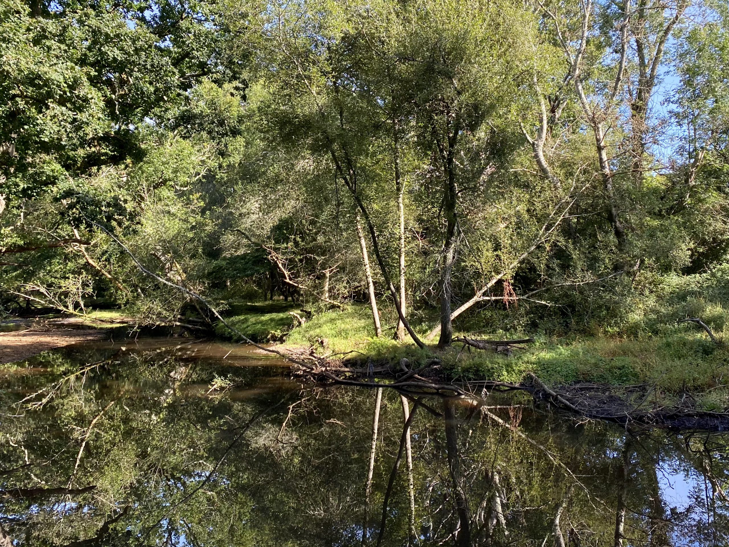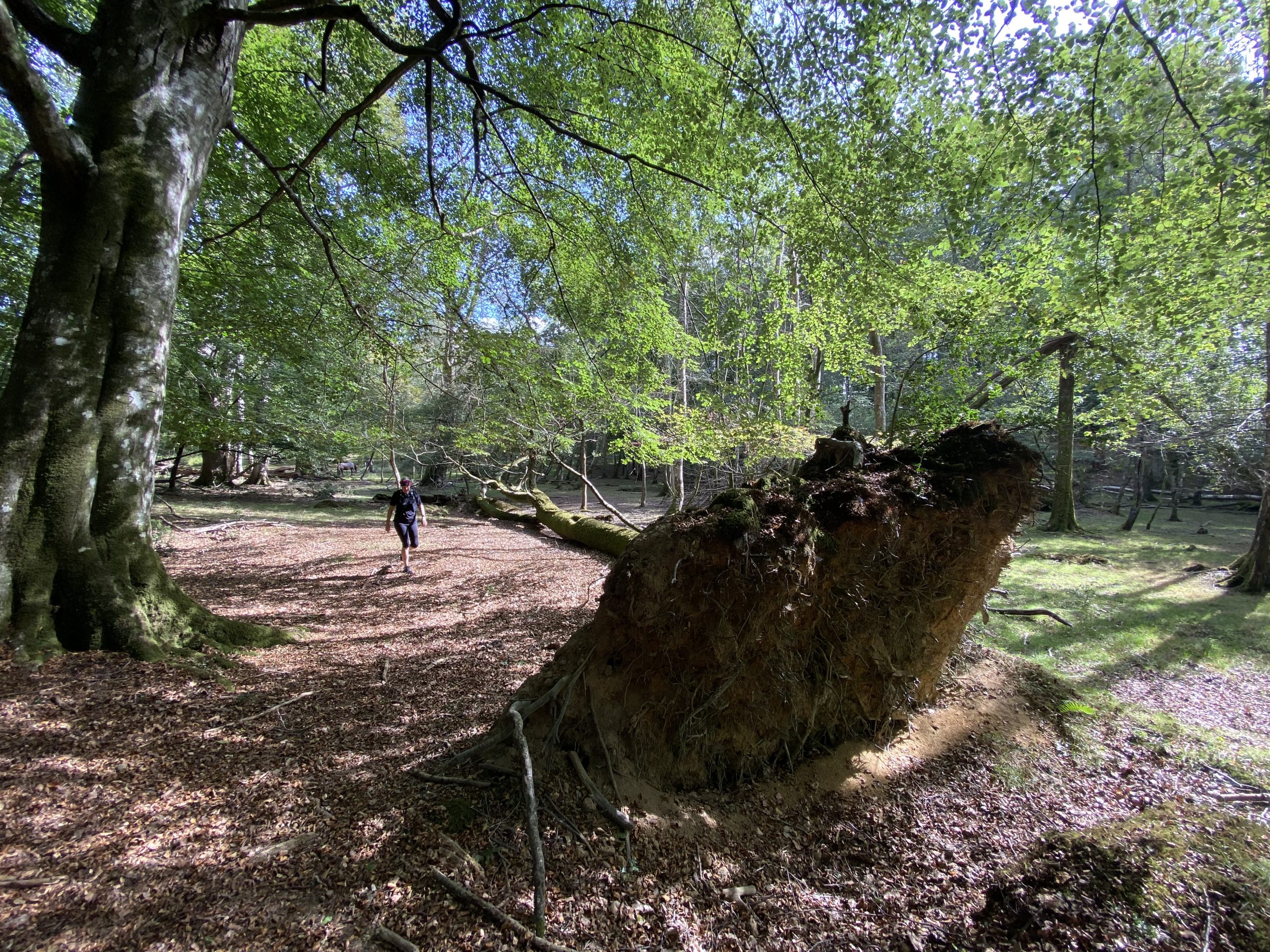 After sticking to the cycle track for a few miles we cut into the forest on a grassy footpath. The New Forest has an unusual mix of flora with open expanses of grass and heathers interspersed with woodland dominated by Beech and Oak trees. On the fringes of the forest ferns dominate the undergrowth and, whiles these are all familiar sights in the UK, somehow their arrangement in the New Forest makes it unique.