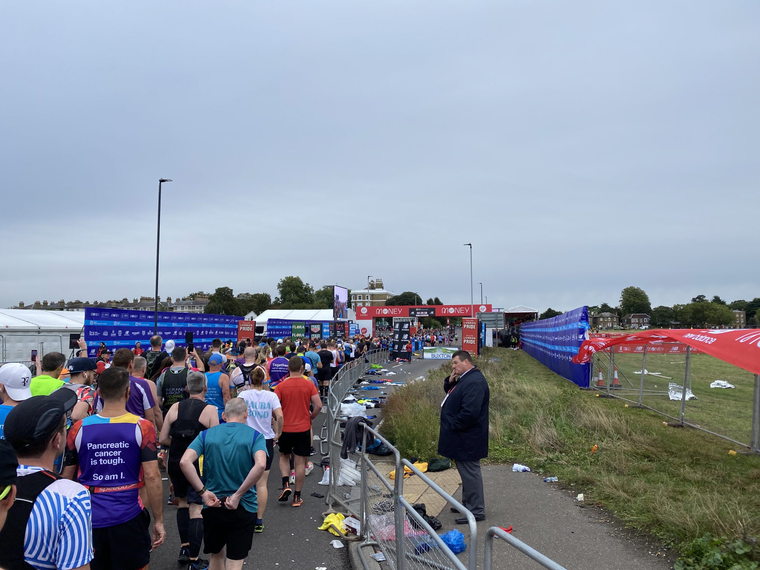 The event organisation was brilliant and this time I started from the Blue start area, accessed via Blackheath. Each group was broken into waves setting off 3min apart. I was in wave 6 setting off at 10:00. Each wave felt quite small, grouped by runners with similar pace ambitions. This led to a feeling of never being too congested which I remember as a feature of the 2016 run with the true ‘mass start’ – frequent stop/starts and lots of weaving around slower runners.