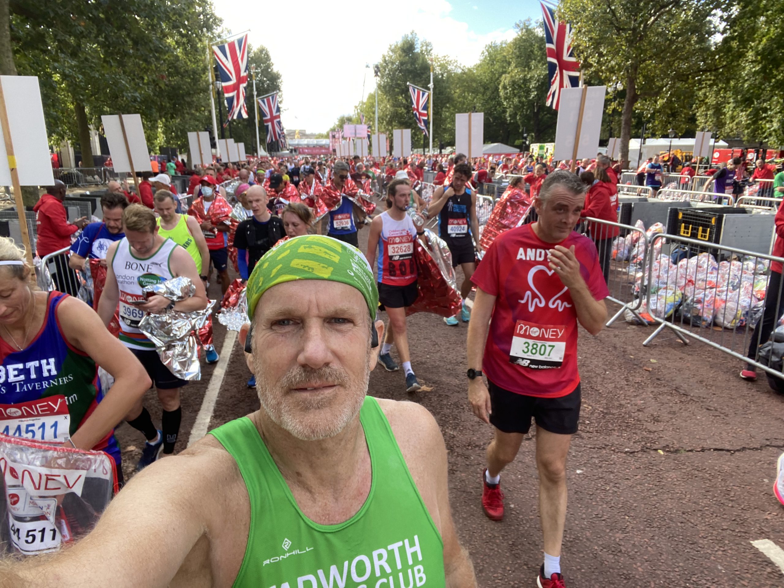 Tom was also running. He’d started with the Red Start area and was having a tough day. To be fair – his focus had been an Ironman 70.3 a few weeks before. This was secondary and he still brought it home in 4:19 – a really good effort considering and a PB for his Abbot World Marathon majors (we have a plan to get all of these at some point). His true PB is around 3:53 – a minute or so faster than me.