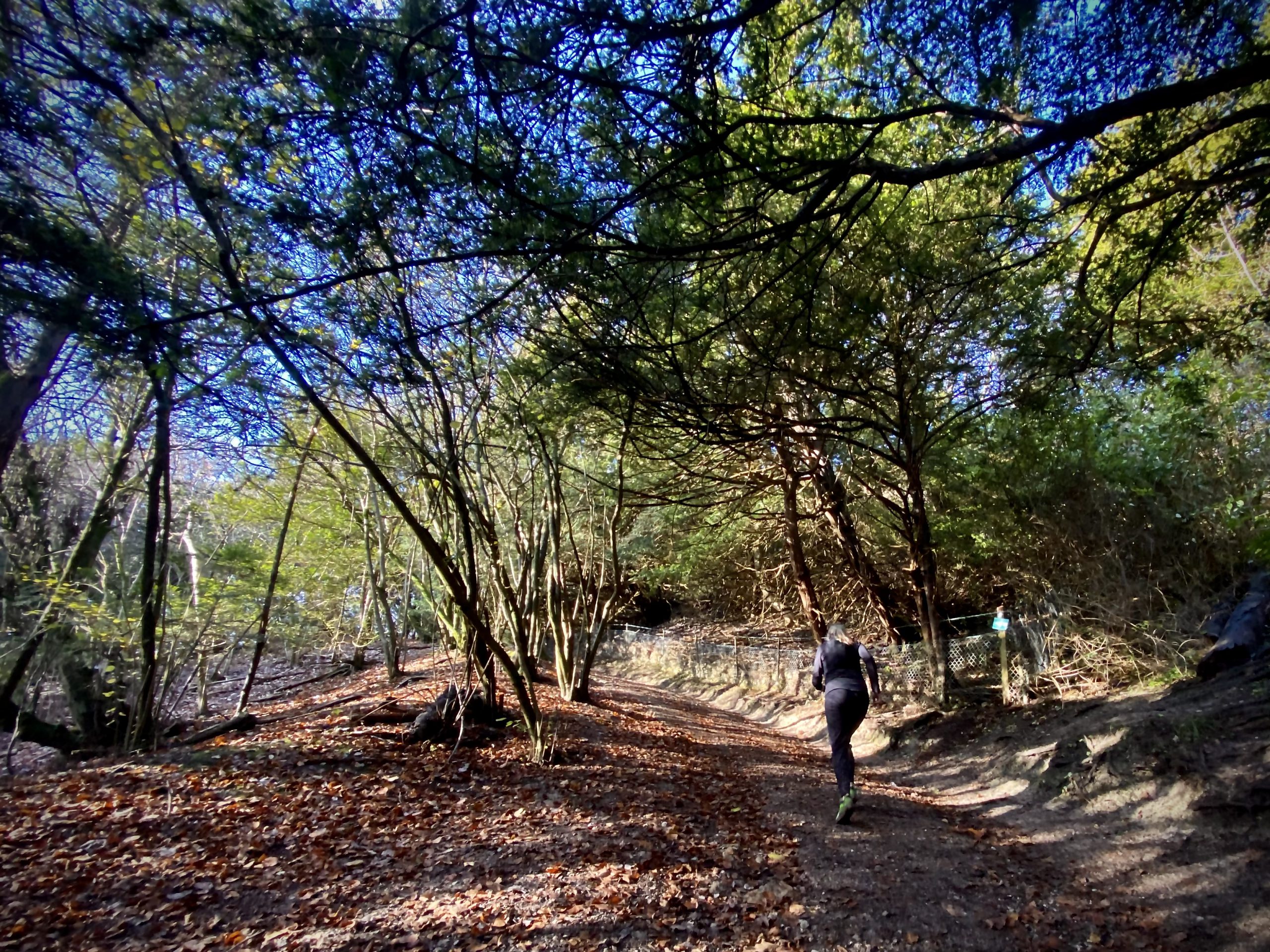 After The Bench we plunged down to the NDW for a lovely but muddy section knowing all the while that Colley was coming. At some point in my training I decided to just embrace Colley Hill. In general I look for hills in my training runs as opposed to avoiding them. I’ve been burned in some long ones by being underprepared for going both up and down and so I just figure more hills are better. There are actually not that many really challenging hills around but Colley Hill is a pretty good one and is a good benchmark of one’s hill form on any given day.